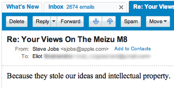 Стив Джобс: «Meizu украла нашу идею и интеллектуальную собственность»