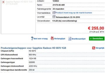 3D-карты Radeon HD 6850 и HD 6870 замечены в онлайновом магазине