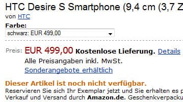 HTC Desire S и Incredible S замечены в продаже по цене около $700