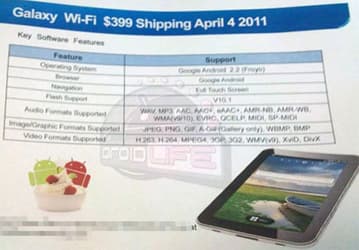 Samsung Galaxy Tab с поддержкой исключительно Wi-Fi поступит в продажу 4 апреля, а Motorola Xoom — 27 марта