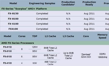 Дебютируют четыре модели: FX-8150, FX-8100, FX-6100 и FX-4100