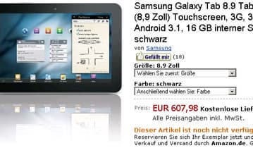 Amazon.de оценил планшеты Samsung Galaxy Tab 8.9 и Galaxy Tab 10.1 в 607 и 638 евро соответственно