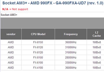 На сайте Gigabyte опубликованы технические данные процессоров AMD FX