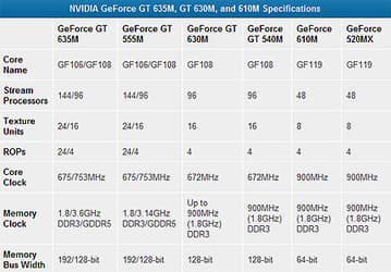 Серию мобильных GPU NVIDIA GeForce 600M открыли модели 610M, GT 630M и GT 635M