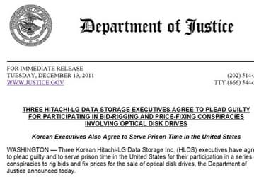 Руководители Hitachi-LG Data Storage приговорены к тюремному заключению за участие в картельном сговоре