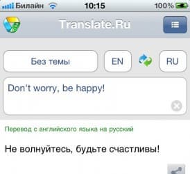 Мобильное приложение работает на базе Translate.Ru API, поэтому для перевода необходимо подключение к Интернету.