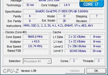 Процессор Intel Core i7-3820 показал хороший разгонный потенциал, покорив частоту 5665,99 МГц