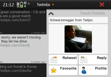 TwimGo поддерживает работу со всеми основными функциями сервиса микроблогов
