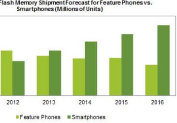По потреблению флэш-памяти смартфоны опередят телефоны с продвинутыми функциями