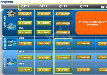 В перечень новинок входят модели Core i5-3340M, i5-3380M, i5-3437U, i7-3540M и i7-3687U