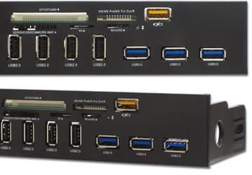 На панели Ainex PF-107CR3 типоразмера 5,25 дюйма размещено восемь разъемов USB и пять слотов для карт памяти