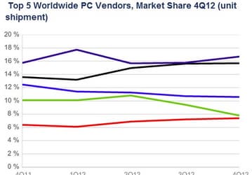 По подсчетам IDC, рынок ПК за год сократился на 6,4%, лидерство осталось за HP