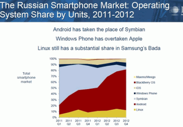 Согласно исследованию IDC, в четвертом квартале 2012 года Windows Phone вошел в тройку лидеров рынка мобильных платформ в России с долей 7%