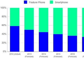 По прогнозу IDC, в 2013 году смартфоны займут 50,1% рынка сотовых телефонов