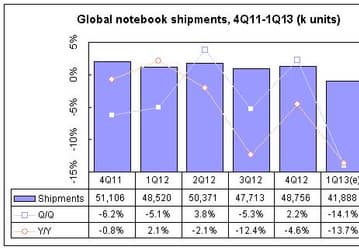 По подсчетам Digitimes Research, поставки ноутбуков за квартал сократились на 14,1%, за год — на 13,7%