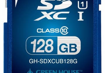 Карты памяти Green House GH-SDXCUB128G объемом 128 ГБ имеют маркировку Class-10 и UHS-I