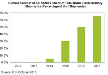 К 2017 году две трети флэш-памяти NAND будет выпускаться по технологии объемной компоновки