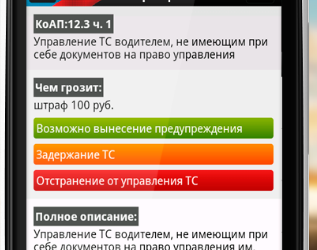 Приложение содержит всю необходимую информацию, касающуюся дорожных знаков, разметки, правил дорожного движения и штрафов за их нарушение.