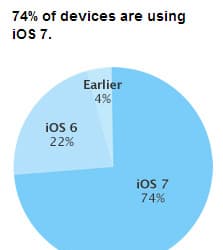 74% мобильных устройств Apple работают под управлением iOS 7, распространение Android 4.4 Kit Kat — всего 1,1%