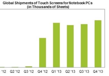 Поставки сенсорных экранов для ноутбуков пошли в гору