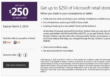 Microsoft готова дать за старый смартфон и планшет до $250 в виде купона на покупку в магазине компании