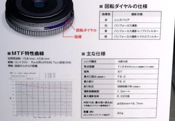 Объектив имеет фиксированное фокусное расстояние, в 35-миллиметровом эквиваленте равное 24 мм