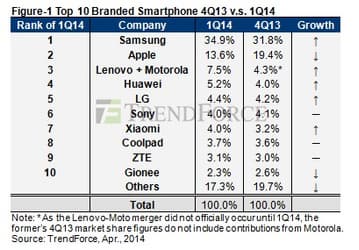 За первый квартал 2014 года было поставлено 266,9 млн смартфонов