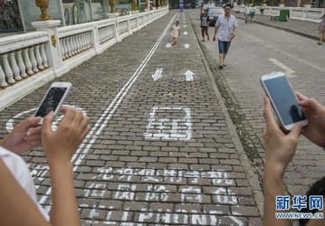 В китайском городе Чунцин для «телефонозависимых» отвели отдельную полосу на пешеходных дорожках