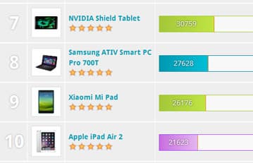 Показатели GPU равны 36 109 баллов для Tegra K1 и 31 396 баллов для A8X