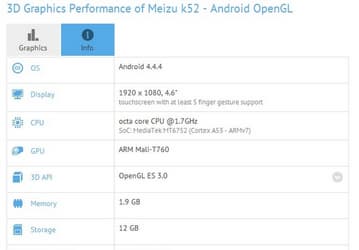 Смартфон Meizu k52 появился в базе GFXBench