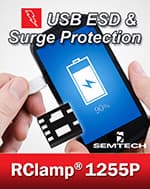 Semtech RClamp 1255P защищает порты USB 2.0 портативных устройств от бросков напряжения