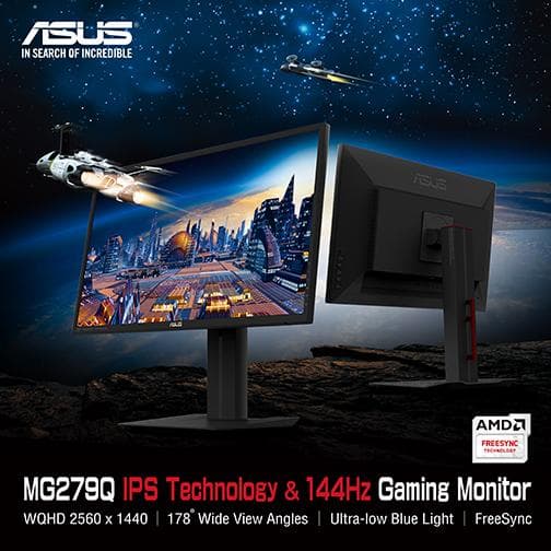 Компания Asus выпустила свой первый монитор с поддержкой технологии AMD FreeSync, являющейся частью стандарта DisplayPort 1.2a. Одновременно он является единственным монитором на базе панели типа IPS (точнее, ее разновидности AH-VA) разрешением WQHD (2560 х 1440 пикселей), поддерживающим кадровую частоту 144 Гц. Новинка называется Asus MG279Q. Размер экрана Asus MG279Q равен 27 дюймам по диагонали.