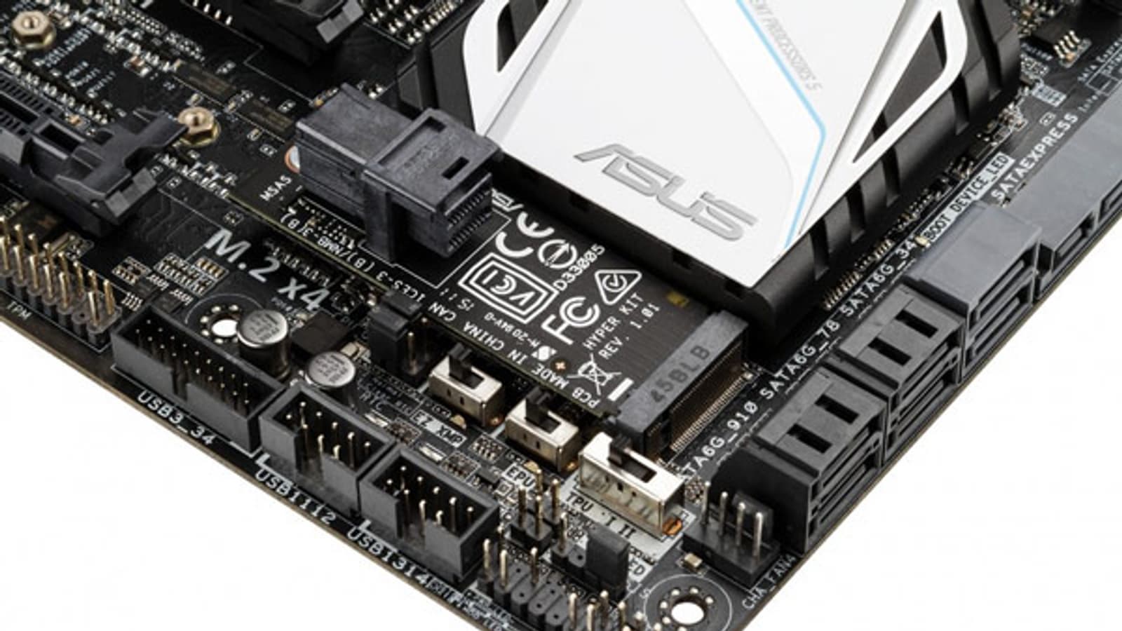 Компания Asus объявила, что все ее системные платы на наборах системной логики Intel Z97 Express и X99 Express поддерживают NVMe. Для этого достаточно обновить UEFI BIOS и в виде опции — использовать карту расширения Asus Hyper Kit.