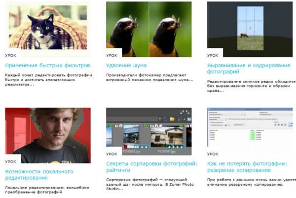 При доступности фототехники в наши дни и простоте создания цифровых фотографий у многих любителей фотосъёмки собираются огромные архивы фотографий. В таких условиях вопрос создания надёжного архива данных встаёт особенно остро. Как запустить процесс резервного копирования? Как выбрать место для сохранения созданных копий? Как сделать архивную копию фотографии? Как сохранить исходные оригиналы фотографий при редактировании? Все ответы можно найти на сайте Zoner. Среди других обучающих уроков — удаление шума, применение быстрых фильтров, выравнивание и кадрирование фотографий, локальное редактирование, проставление рейтингов.