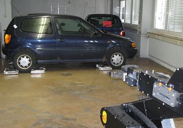 Комплект из четырех маленьких робо-тележек переместят автомобиль в нужное место