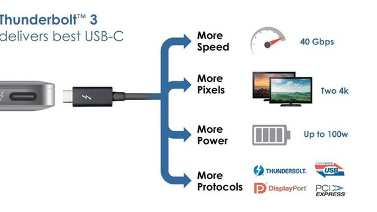Дело в том, что Intel решила использовать разъём типа USB Type-C. При этом заявлена совместимость с интерфейсом USB. Процессорный гигант называет новую версию самым быстрым и самым универсальным интерфейсом.