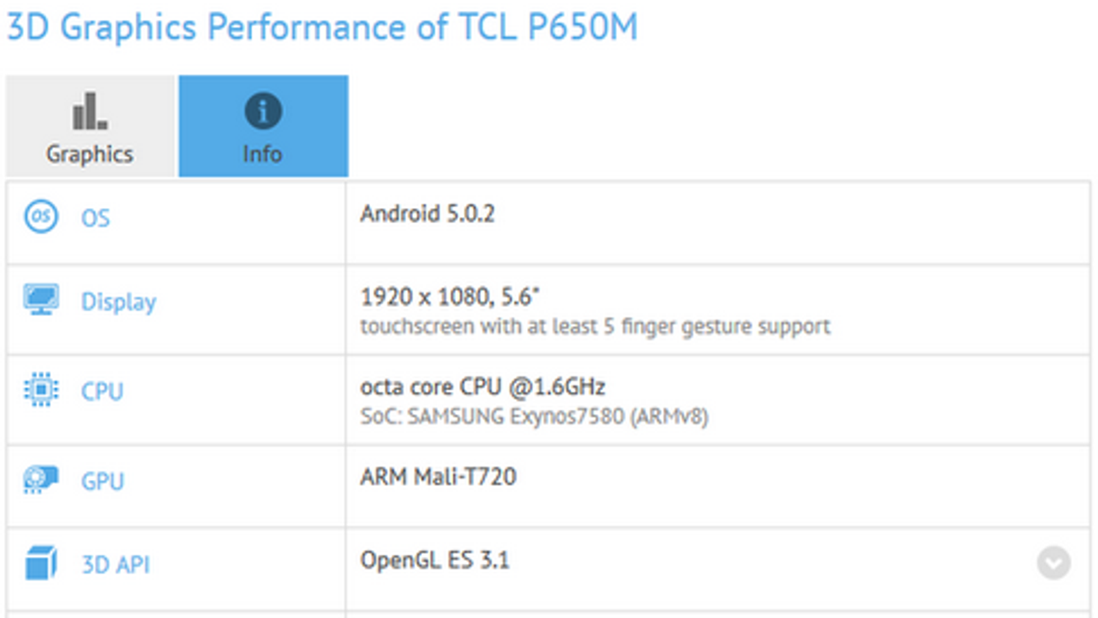 Любопытный нюанс — носитель новой платформы, результаты тестирования которого появились в базе данных ПО GFXBench, произведён не Samsung, а компанией TCL. Аппарат фигурирует под именем P650M.
