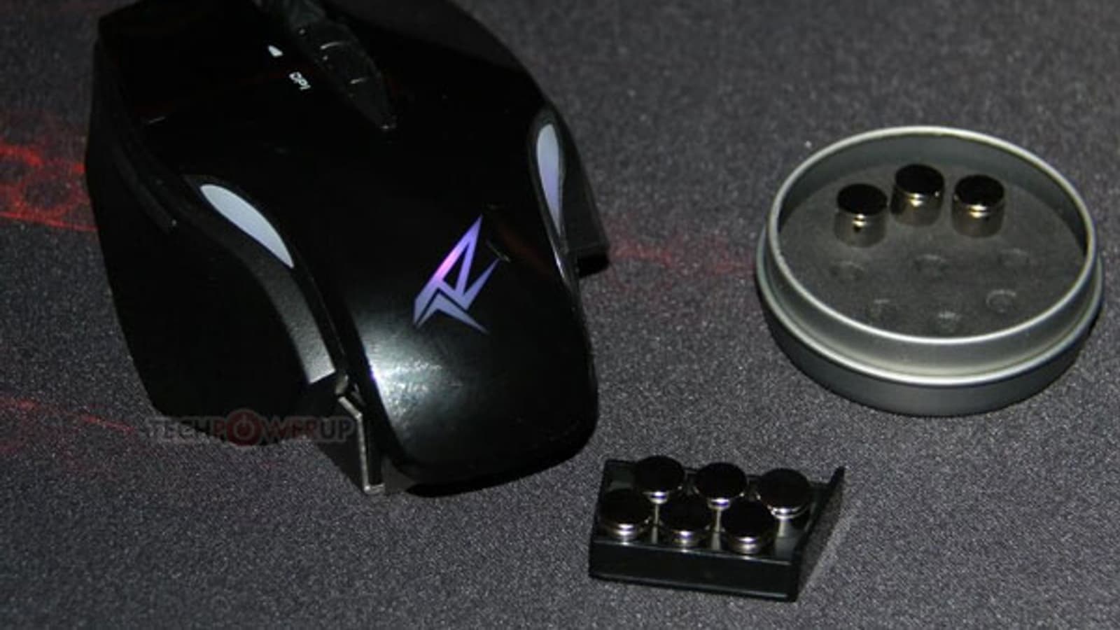 Мышь, как теперь принято говорить, «флагманская». В ней используется лазерный датчик разрешением 8200 точек на дюйм. Менять разрешение на ходу позволяет пара кнопок рядом с колесиком прокрутки. В двух основных кнопках используются микропереключатели Omron. Кроме того, есть пять дополнительных программируемых кнопок. В конструкции мыши стоит отметить металлическое основание и сменные грузики для настройки массы. Мышь рассчитана на хват всей кистью.