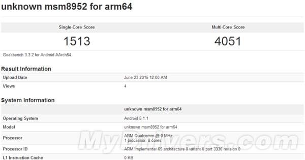 Неизвестное устройство, основанное на SoC Snapdragon 620 (MSM8952) появилось в базе данных ПО GeekBench. Платформа смогла набрать 1513 баллов в режиме Single Core и 4051 балл в режиме Multi Core. Результат очень неплох и приближается к топовым платформам нынешнего поколения. Но данный тест позволяет оценить лишь производительность процессора, тогда как о GPU нам до сих пор ничего неизвестно.