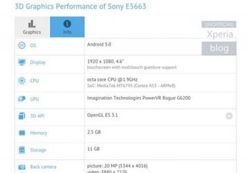 Смартфон Sony E5663 основан на платформе MediaTek MT6795