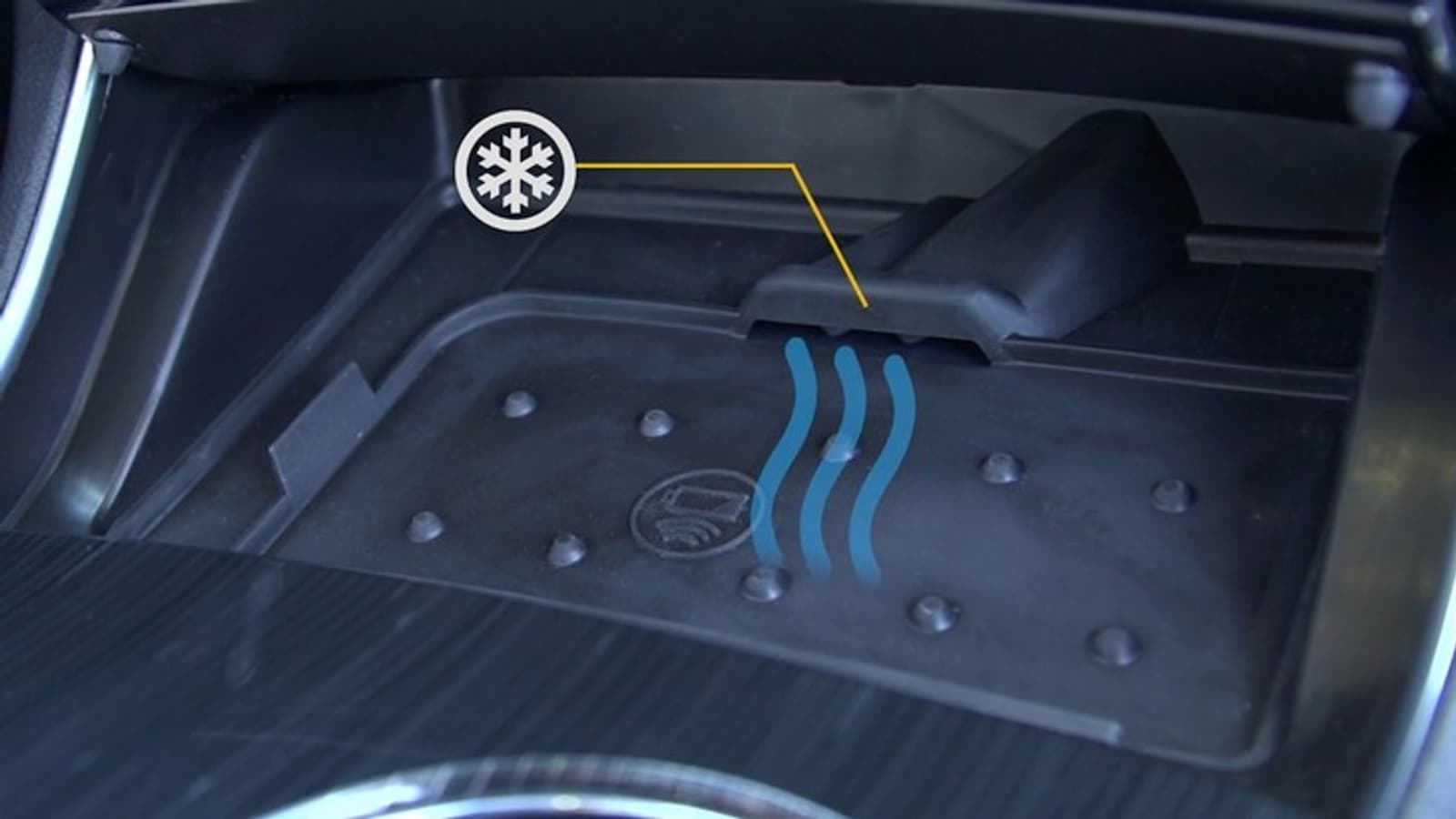 Решение носит название Active Phone Cooling и представляет собой отдельный воздуховод, подключённый к системе кондиционирования. Он направляет поток холодного воздуха на то место, где расположена площадка с беспроводной зарядкой для смартфонов. Насколько эффективно такое решение, неизвестно, но можно не сомневаться, что оно позволит снизить температуру корпуса мобильного устройства.