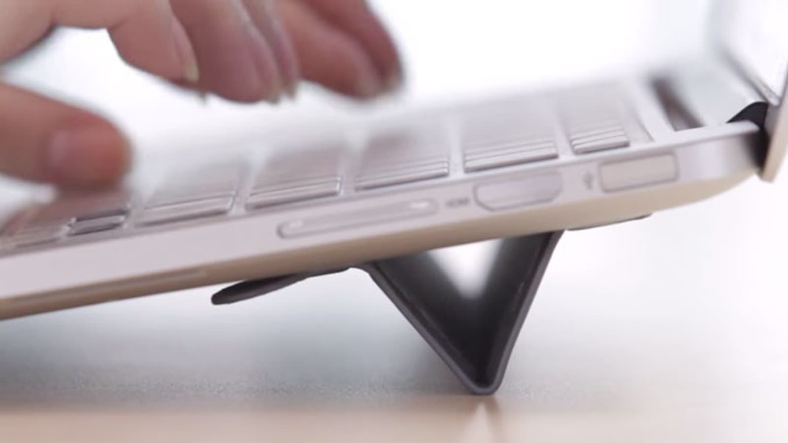 Складная опора приподнимает дальнюю от пользователя сторону ноутбука на 3 см, что делает работу с компьютером более комфортной.