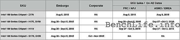 Спустя три с половиной недели Intel представит еще шесть процессоров (Core i7-6700, Core i5-6600, Core i5-6400, Core i7-6700T, Core i5-6600T и Core i5-6400T) и еще пять чипсетов новой линейки (H170, B150, H110, Q170 и Q150). Однако продажи изделий «второй фазы» в регионе EMEA (страны Европы, Ближнего Востока и Африки) стартуют только через месяц после анонса — на неделе с 27 сентября по 3 октября. При этом в странах Азиатско-Тихоокеанского региона продажи всех шести CPU и системных плат на базе чипсетов H170 и B150 начнутся одновременно с анонсом.