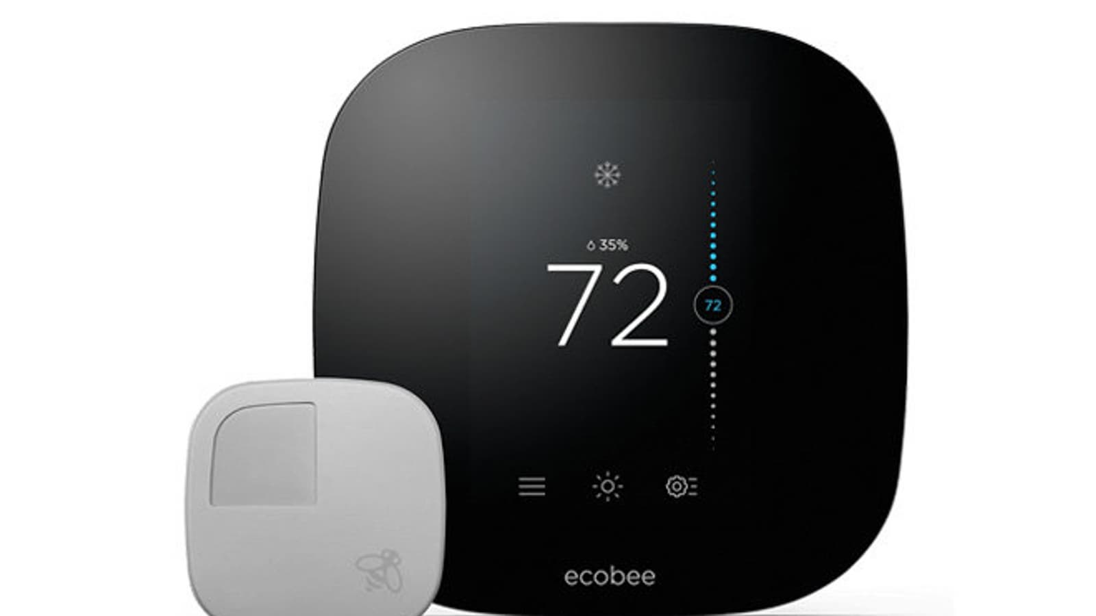 Это умный термостат ecobee3 Smart Wi-Fi Thermostat. Устройство оценивается в $250. Способности решения примерно соответствуют известному устройству Nest. Термостат умеет управлять температурой в помещении, руководствуясь показаниями беспроводных датчиков. В комплекте с новинкой идёт лишь один такой, но пользователь может подключить до 32 датчиков. Правда, всего парочка обойдётся в $80. Кроме датчиков, устройство опирается и на прогноз погоды.