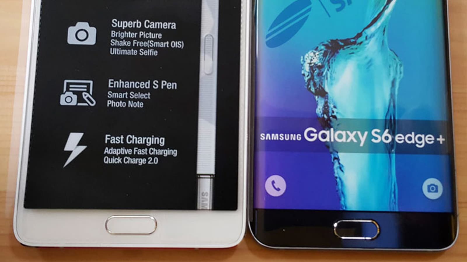Источник опубликовал серию снимков, на которых, по его словам, запечатлен муляж смартфона Samsung Galaxy S6 edge+. Бок о бок с ним снят смартфон Samsung Galaxy Note 4, что позволяет составить представление о размерах новинки.