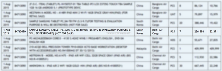 Третьим, предположительно, является планшет. Это может быть как Galaxy Tab S2, так и новый Galaxy Tab Note. Если верить сайту Zauba, это может быть и гораздо более крупное устройство.
