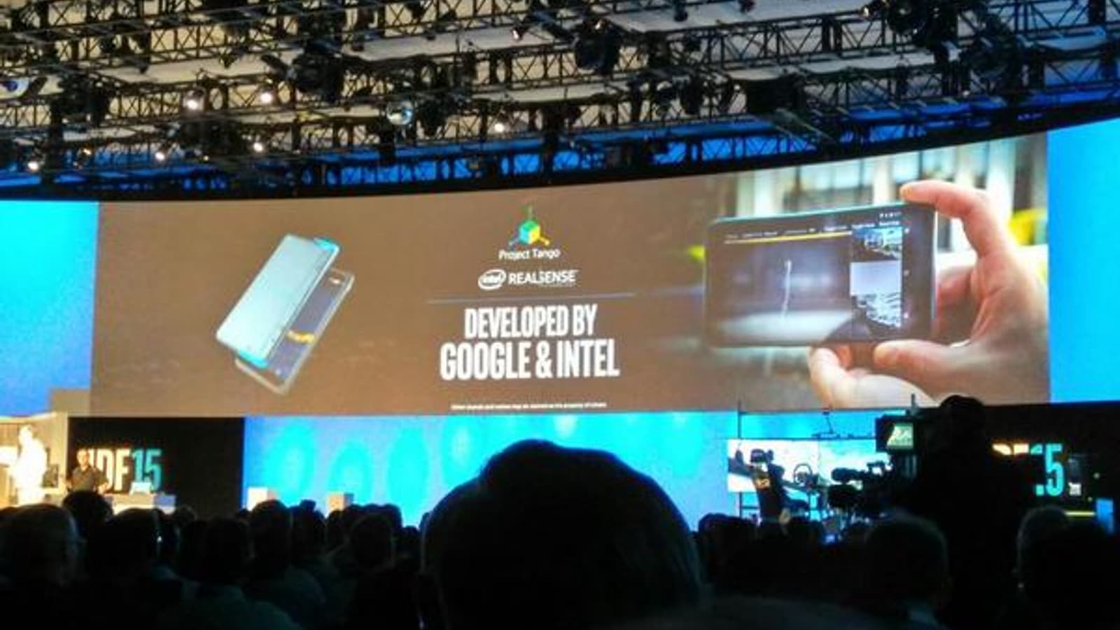 Project Tango Development Kit стал результатом сотрудничества Intel и Google, о котором также было объявлено в ходе конференции. Продемонстрированный набор для разработчиков выглядит, как шестидюймовый планшетофон с обилием камер на задней панели. Предполагается, что комплект будет рассылаться в конце текущего года разработчикам, заинтересованным в создании приложений, создающих 3D-модели пространств. В прототипе используется новый уменьшенный модуль камеры RealSense, представленный на конференции IDF 2015 в Шэньчжэне этой весной.