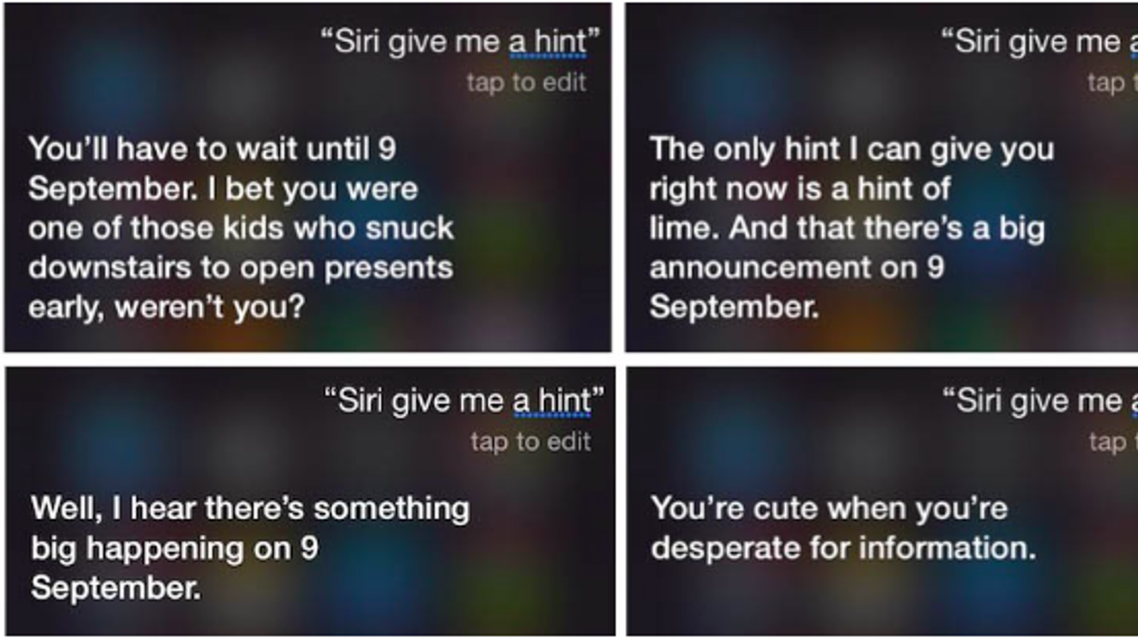 На просьбу дать подсказку, заключённая в мобильном устройстве Apple женщина ассистент может ответить «Говорят, 9 будет происходить какое-то потрясающее событие». Либо использовать иную подобную фразу. Конечно, скромности Apple в данном случае не занимать, но сама идея выглядит достаточно оригинально.