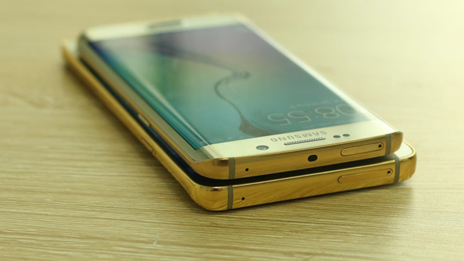 На верхних снимках новинка изображена рядом с моделью Samsung Galaxy S6 edge, конечно, тоже позолоченной.