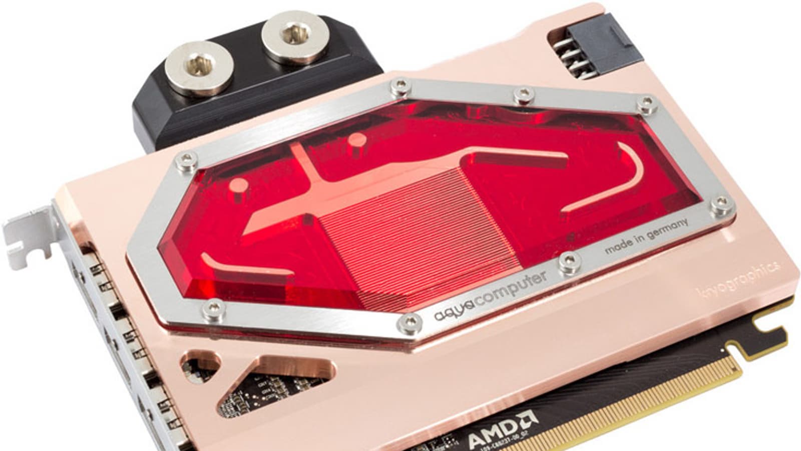 Показанный на иллюстрациях водоблок представила немецкая компания Aqua Computer. Новый водоблок Aqua Computer предназначен для 3D-карты Radeon R9 Nano. Как известно, штатно видеоускоритель AMD Radeon R9 Nano оснащается воздушной системой охлаждения с одним вентилятором.
